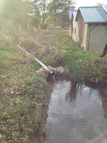 Mise en place du trop plein qui va se jeter directement dans le ruisseau en